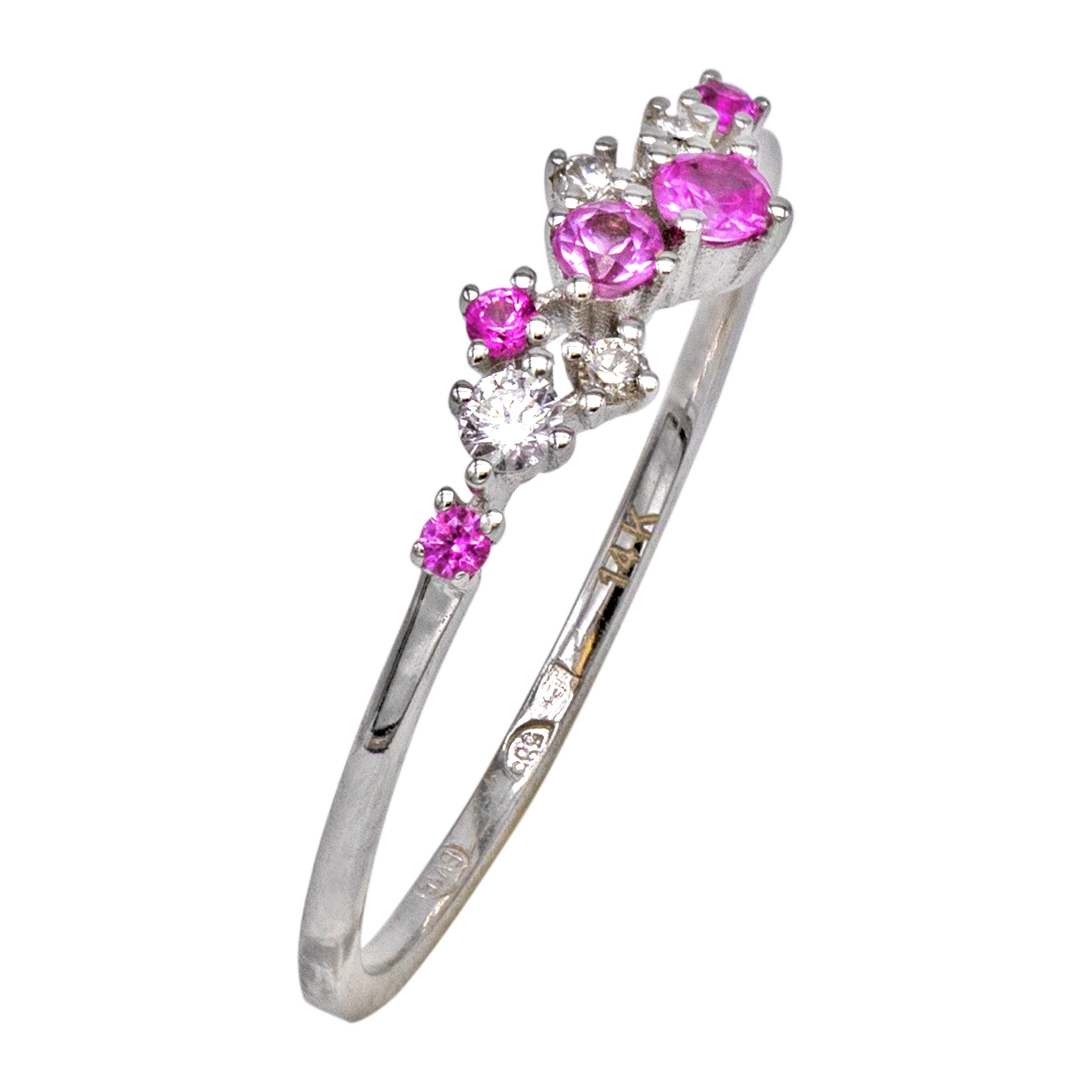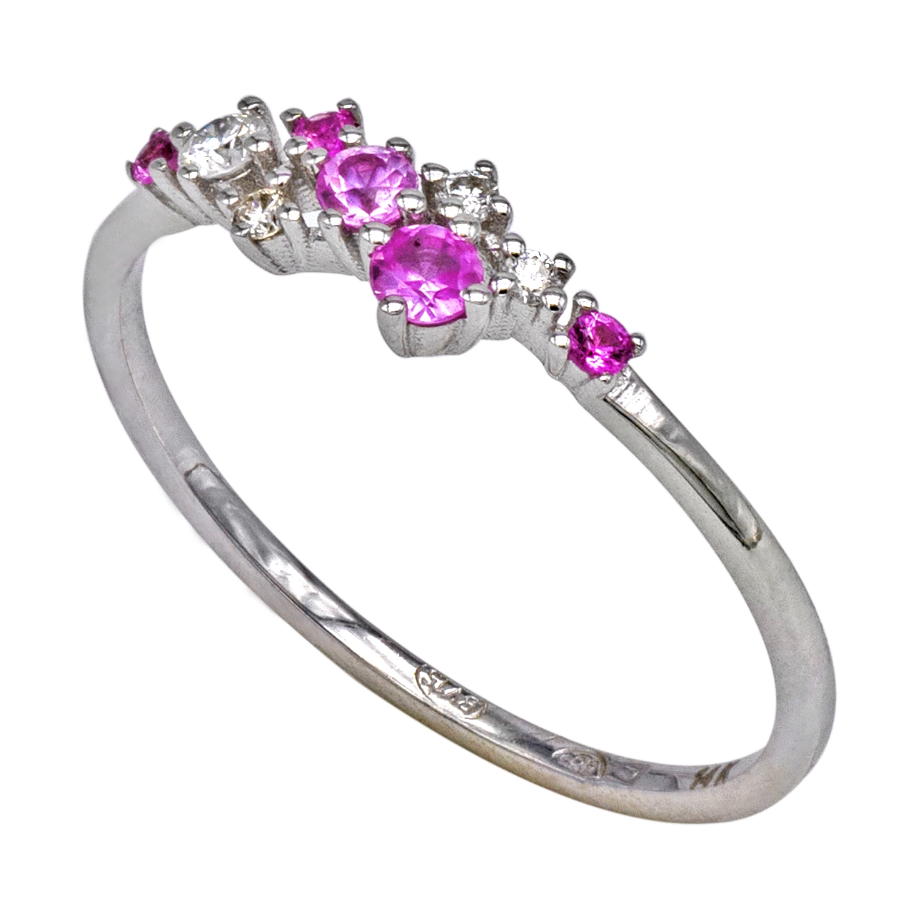 Acest inel din aur alb de 14K, cu o greutate fină de 1,12 grame, este perfect pentru cei care apreciază delicatețea și eleganța. Decorat cu diamante strălucitoare de 0,09 CT și safire roz totalizând 0,16 CT, inelul aduce un contrast încântător între strălucirea diamantelor și frumusețea subtilă a safirelor roz. Designul modern și rafinat al acestui inel îl face ideal atât pentru ocazii speciale, cât și pentru a adăuga o notă de eleganță ținutelor zilnice.